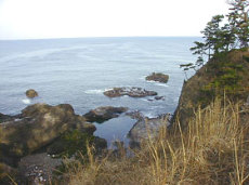 やむなく、風無しをのぞくがやはりベタナギだ。とりあえずさらに車を走らせる。ヤセの断崖、関の鼻はまずまずの波だ。