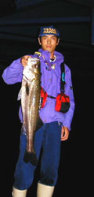 やはり墨跡があるので気合いがはいるが、なにをしても反応無し。釣りが単調になってきて、とうとう眠くなり堤防の上で大の字になる。10分ほど寝ただろうか・・・すっきりしたが、釣れる気配はまったく感じられず、撤収の決断!最近好調な大野川へ向かった。AM2時半頃から釣り始めた。例によってルア−をとっかえひっかえしながら釣っていると、コツッとだけあたったので、そこを重点的にせめる。するとまたコン!と来てこんどはフッキングした。65pゲット! つづいてガツガツッ!ときて30pでした。流れが強くなったが、シンキングに変えて、またコン!とあたった。おなじようなパタ−ンで51pゲット! 場所を変えて基本どうり、水銀灯の明暗部の境目をトレ−スして67p。そしてとうとうルア−が、手前の暗闇にさしかかったところでグンッ!!ときて83pをゲット!ベイトが豊富なため体力があり、かなりトルクフルな引きで楽しませてくれました。(少しフックがのびてた)