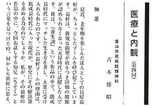 最後に、私が知足という言葉に魅了された訳が述べる必要があります。精神科の医師として毎日の診療していますと、この知足という考えを持っておれば病にならなかったと思う人が多いからです。アルコール依存症は、死ぬまで飲み続ける慢性の病ですし、行為嗜癖と言われている買い物依存症、ギャンブル依存症も足る事を知らない病とも言えます。また、価値観の変動,文化的な混乱が生み出しやすいと言われる境界性人格障害は、対人関係の上で過剰なまでに見捨てられないように懸命な努力をして相手にしがみつき、うまくいかないといろいろな行動や精神症状を認めます。私は、益軒の言う「楽しみ」を積極的に見いだす知足という考えに到達できるには、内観が良いと思います。内観することにより、生かされている自分に感謝できる人間になりたいものですね。