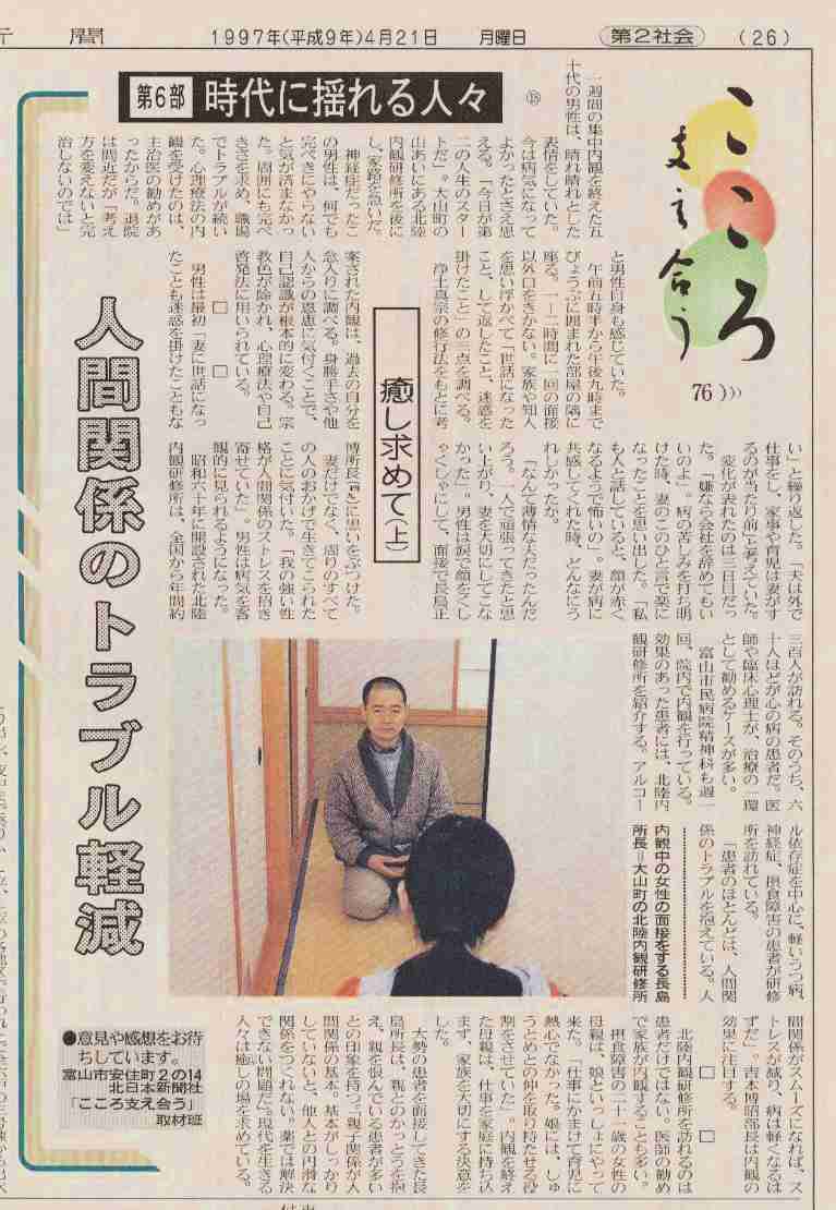 「北日本新聞」平成9年4月21日(月)社会2面