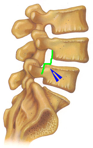 緑の線でなぞってあるように、青矢印のところで腰椎がずれていることがわかります。