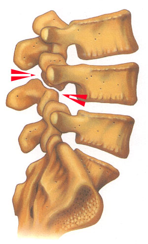 この状態のままですと将来的に骨がずれてくる(脊椎辷り症)場合や、骨のぐらつき(脊椎不安定症)が生じてくる可能性があります。