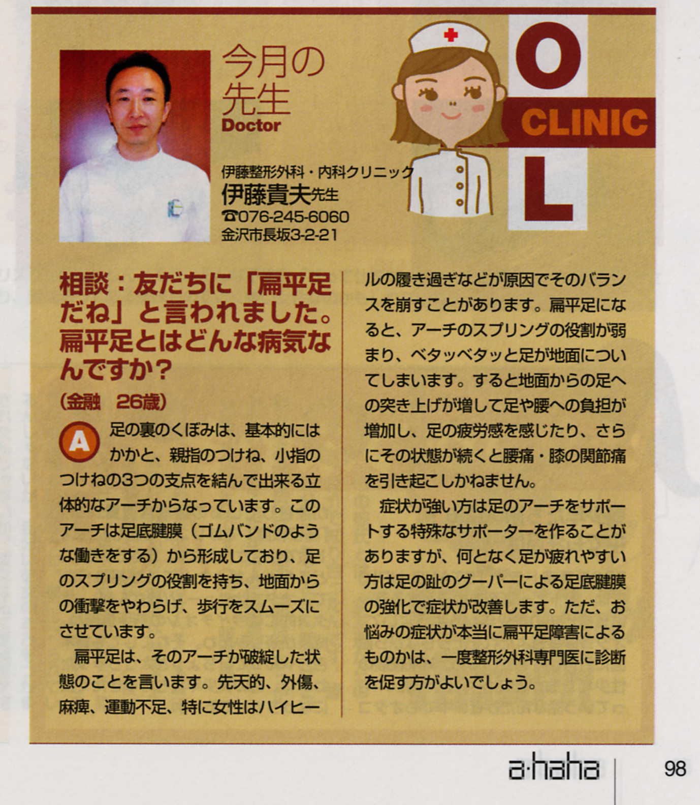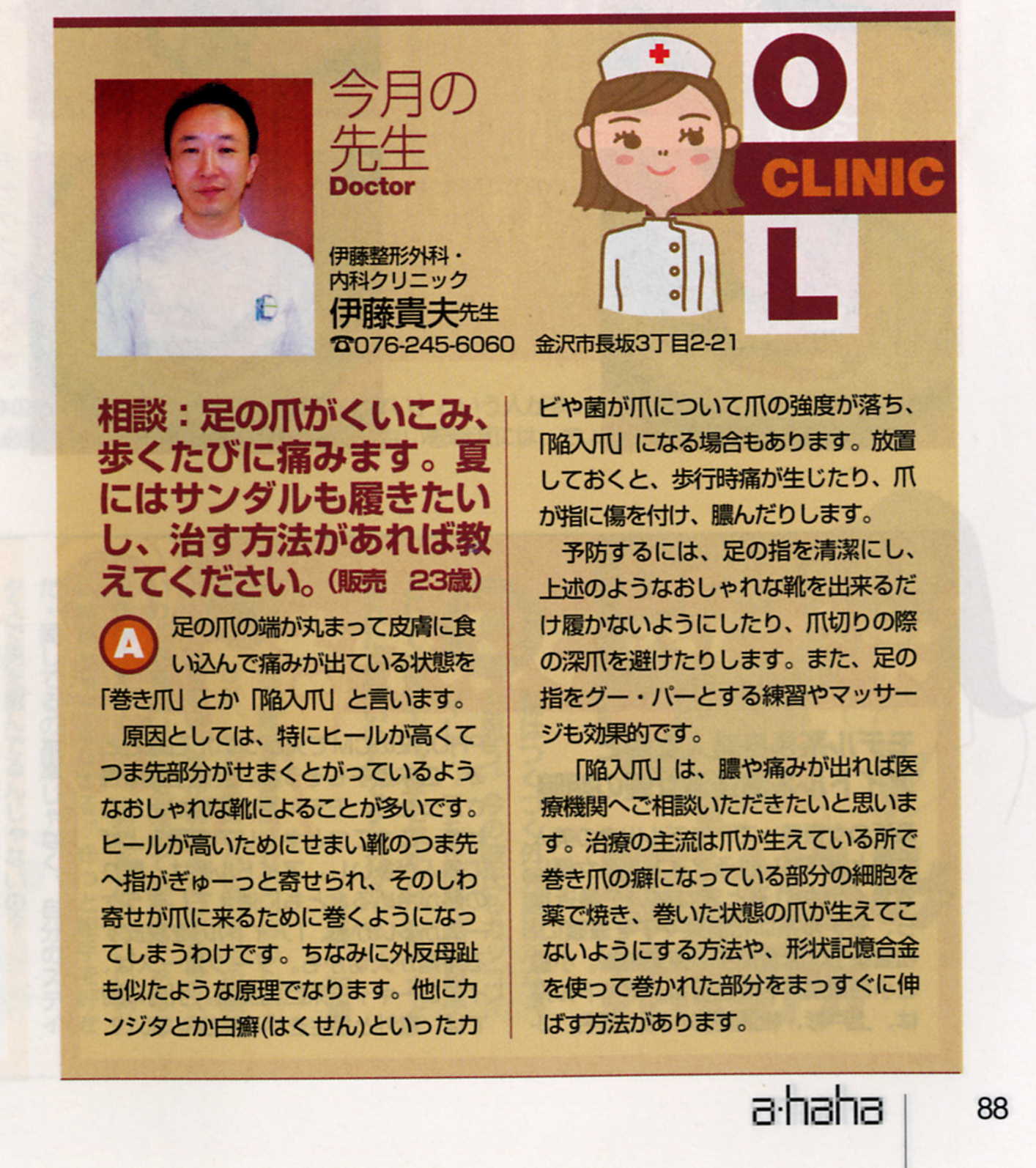 OL情報誌 「ahaha」 に疾病説明で掲載されました。