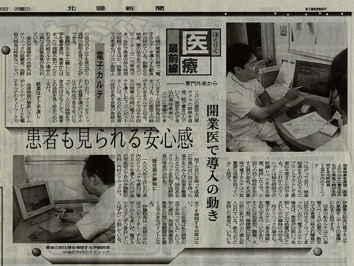 2001年8月6日号北国新聞に「電子カルテ」で掲載されました。