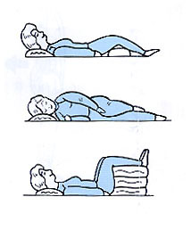 [左の図]安静に寝ているときの注意点は、まず硬めの布団或いはベッドで休むことです。