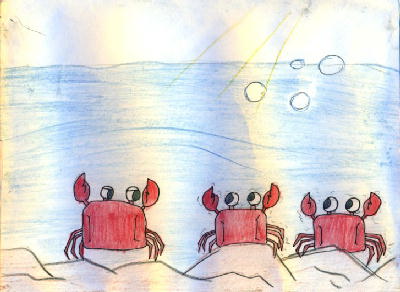 かにの子供いっしようけんめいに、お父さんに説明している表現をがんばった。