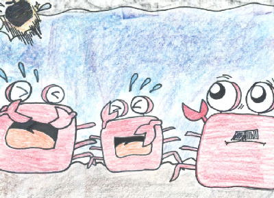 黒い大きな物が落ちてくる様子をうまく表現できた。