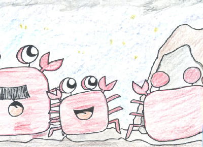 穴に入るように見せるために、兄のかにを後ろ向きにした。