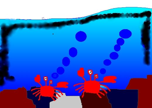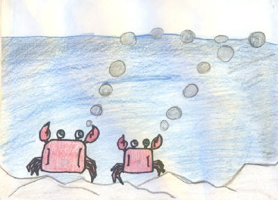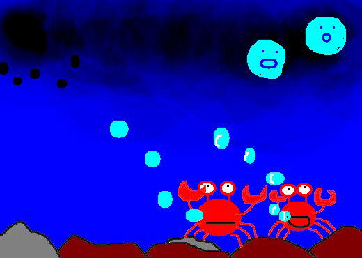 「やまなし」の世界を紙しばい風にあらわしてみました。4チームあります。コンピュータで描いたグループと画用紙に描いたグループが2つずつとなっています。
