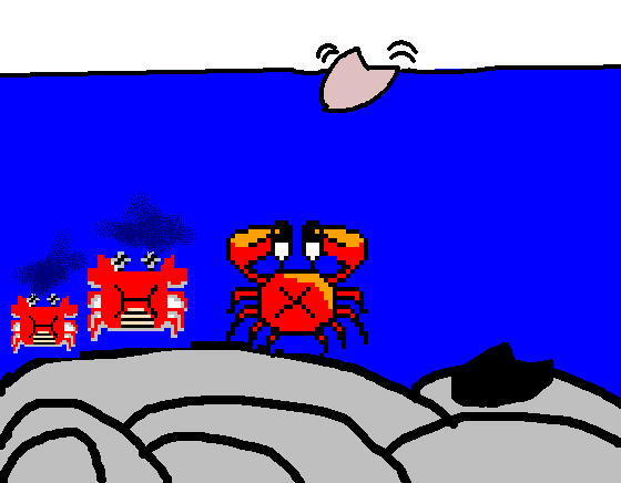 「いい、いい、だいじょうぶだ。心配するな。そら、かばの花が流れてきた。ごらん、きれいだろう。」