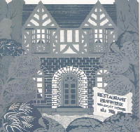 不気味な雰囲気になってくる。そして気がつくと、後ろに立派な洋館があり、「西洋料理店・山猫軒」という札がでている。空腹を覚えていた2人は、こんな山の中に立派なレストランがあるのはおかしいと思いながら、食事にありつけそうなのを喜ぶ。そしてガラスの戸には、「どなたもどうかお入りください、決してご遠慮はありません」と書いてあるのだ。