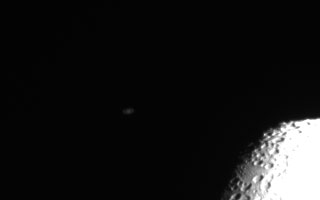 普段なら熟睡・爆睡時間帯であり体が重い..日頃の無精もあって思うように準備の能率上がらない..結局、撮れたのはこれだけ。 しかも、すでに食が終わり月から離れ始めた画像..眼視ではしっかり観察しました。土星が半分月に隠されて見えない状態は圧巻!! (というか、ぱっと見ただけでは土星が見えない!よく見るとクレーターの山と土星の半分が重なって見えていました。) それにしても、この肝心な場面を画像に残せなかったのがとっても残念!! (同じ頃、米国の報復攻撃開始で世界は大騒ぎしてたのですね..) |