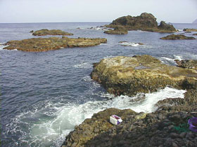 やむなく、風無しをのぞくがやはりベタナギだ。とりあえずさらに車を走らせる。ヤセの断崖、関の鼻はまずまずの波だ。