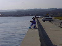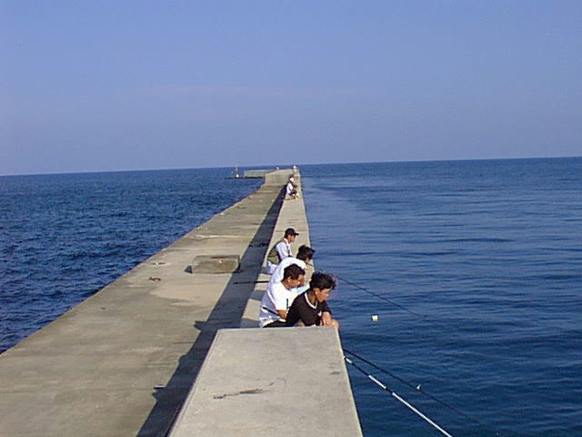 防波堤の口から10mくらい 先端よりで、外側 遠投 仕掛けは誘導、底狙い |