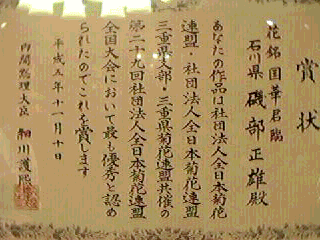 平成5年 日本菊花全国大会 (12鉢花壇) 12位 日本菊花会会長賞