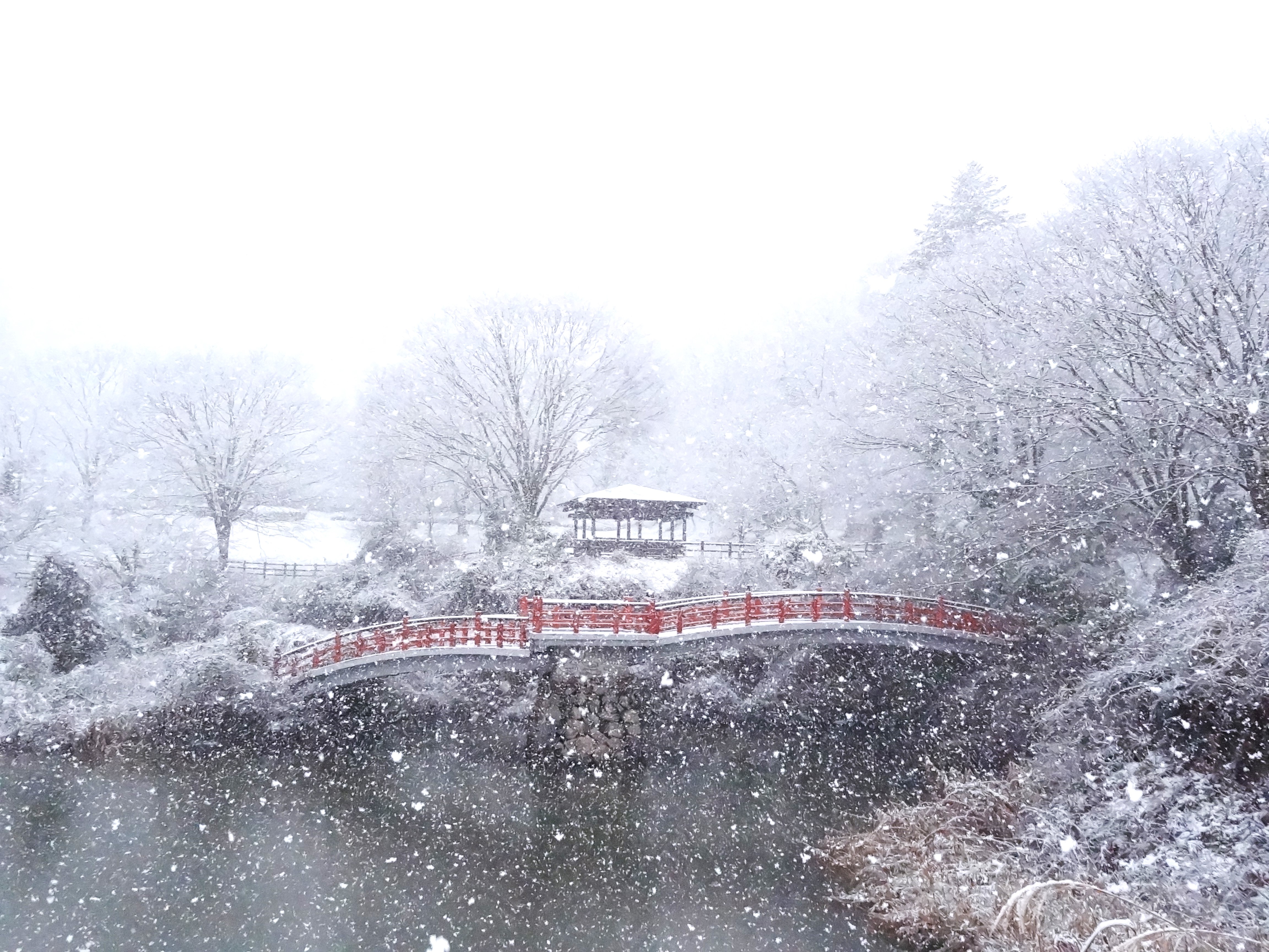 何年振りかの雪景色の中です。 撮影時に、できれば粉雪舞い散る様にが願った通りになりました。 降り出したときはまだ薄っすら白粉だと思っていたのです。 大きな夢ですが、地球から「戦争」という事態が無くなることを祈ります。