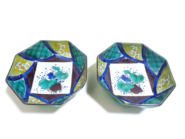 | 吉田屋八角向付一対 江戸後期 径13.8 高5.0 無傷 あがり良好 価格 ¥300.000 |