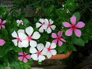 | ニチニチソウ | サンジバナ | 花とカマキリ |