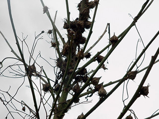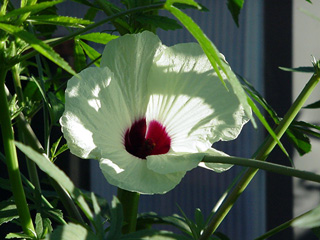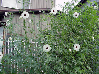 | 9月24日台風18号の被害に遭う | 9月25日開花(鉢植え) | 10月8日咲き誇るケナフの花 |