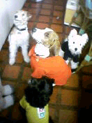 2002.12.31 3日前からゆず姉ちゃんとびわちゃんが来ている。 ジップお兄ちゃんがみんなと仲良しだから、ぼくもすぐに仲良くなったよ。ただ、ゆず姉ちゃんは大きいし、ちょっとこわいんだ。ぼくなんかすぐにガウッって怒られちゃう。でも、そんな時はジップお兄ちゃんが助けてくれるんだよ! |