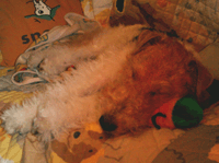 大阪のマームママはママの匂いのするおもちゃを贈ってくれた。今日はこれをまくらにして眠ることにするんだ。 おばあちゃんとSMママも、他にもたくさんプレゼントをありがとお。だいじにするね。 今日は大阪のお家の夢をみるよ。ぼく。 |