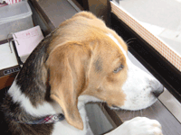 いたさんのHPで、二人が全国の旅に出る事を知り、さっそく名乗りをあげ、ご招待しました。ジップ家のパパ・ママが参加している春期祭礼の獅子舞を見物してご満悦。獅子舞保存会の面々にもかわいがってもらっていました。だって、ガウもしないし、とっても良い子なんだもの、みんなにかわいがられちゃうよね ゆず家のスタンダードビーグル、10ヶ月のゆず 9人兄弟の中で一番元気だったといういわく付きのお姉ちゃん。ジップパパの弟夫婦と一緒に4泊5日滞在しました。ジップが初めて長く一緒にいたお友達ってことです。ジップはゆずのわんぱくギャルぶりが、いたくお気に入りで、ずーっと後をついて歩いている5日間でした。 さみしがりやで、すごいジャンプができるゆず、また遊びに来てね。 |