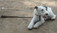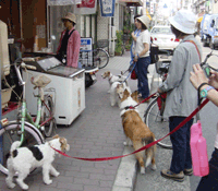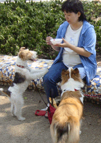 バ 「暑いなー、今日は。」 バロン君は、リードつかんでなくても、どこにも行かないから休憩中もこんな風。おりこうさん! |
