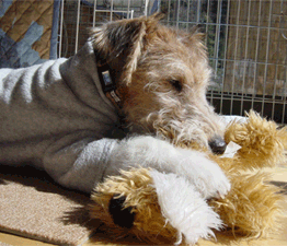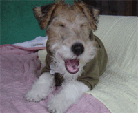 なんだか怒られることも多いし、こうみえてもいろいろあるんだ。家の中で、僕より下のヤツは、この毛むくじゃら犬だけ。いやなことがあった時はこいつにあたったり、眠い時は、こいつをかんだり、まくらにしてみたり。 ライナスの毛布ね、ってママは言ってるよ。 |