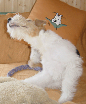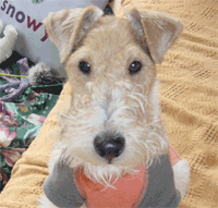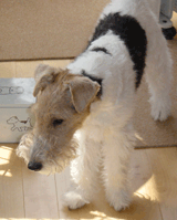 獣医さんのところで週一回パピークラスっていうのに行って「つけ」だの「ずーっとまて」だのママと一緒にお勉強してるんだよ。 1時間もやってるから最後の方はあきちゃうんだけどね。おうちでも何かにつけやらされるんだ。いろんなこと。ときどき「それ何だっけ」ってかたまっちゃうけどね。 |